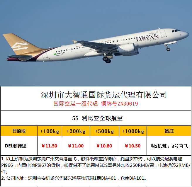 大智通国际货运为广大客户提供DEL新德里空运服务,本公司多年致力于国际空运出口服务,有丰富的国际空运经验,有解决空运各种疑难杂症的方案,对各种难运的特殊的货运物品有丰富的操作经验,能顺利空运到目的港,可走真、仿牌,电池等特殊货物; 而且大智通国际空运公司与众多航空公司合作,航班资源非常密集,DEL新德里空运价格也就变得非常实惠,欢迎来电咨询:400-0755-028,QQ:2853026091