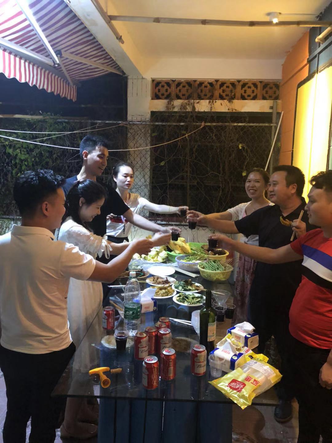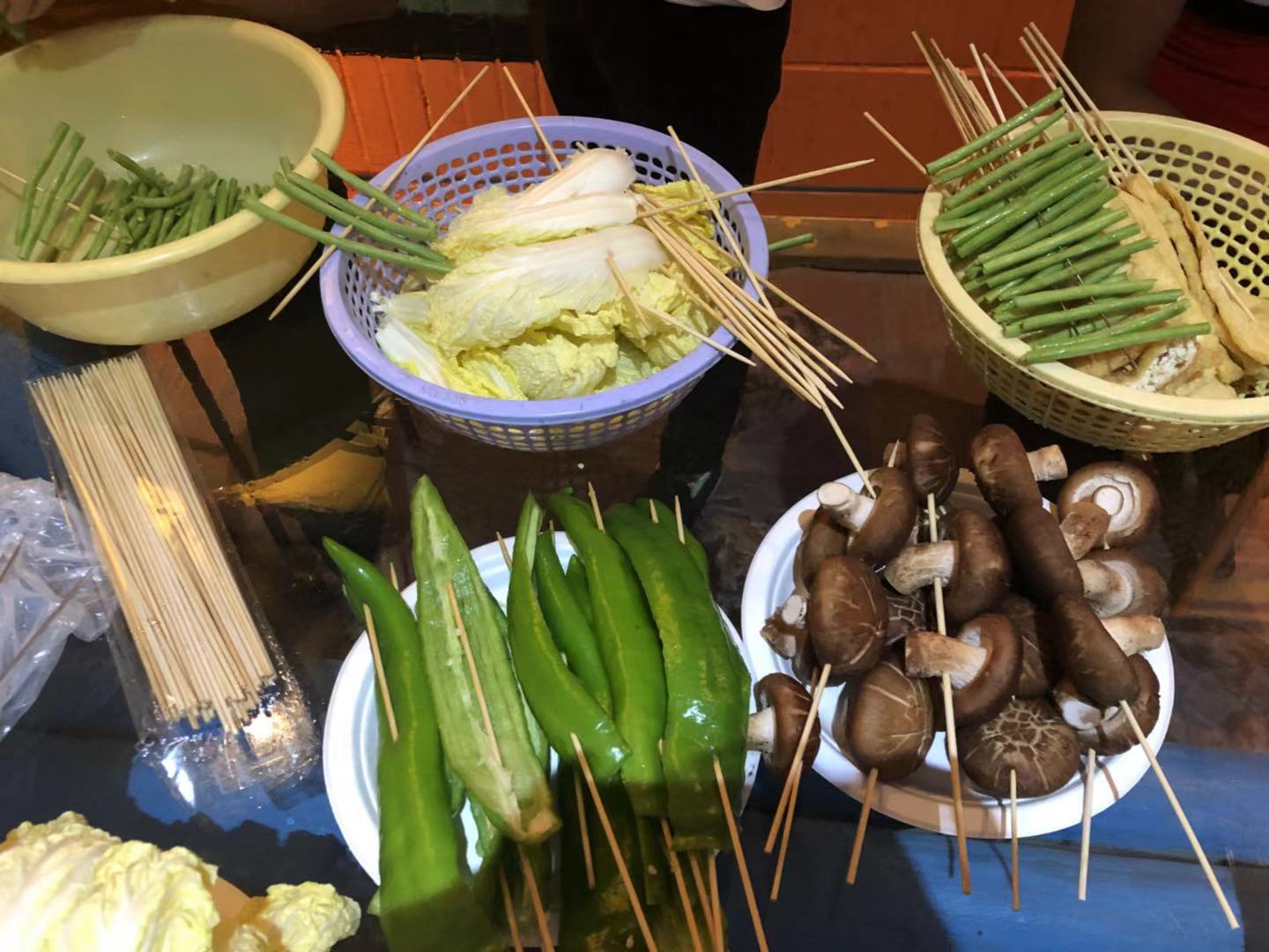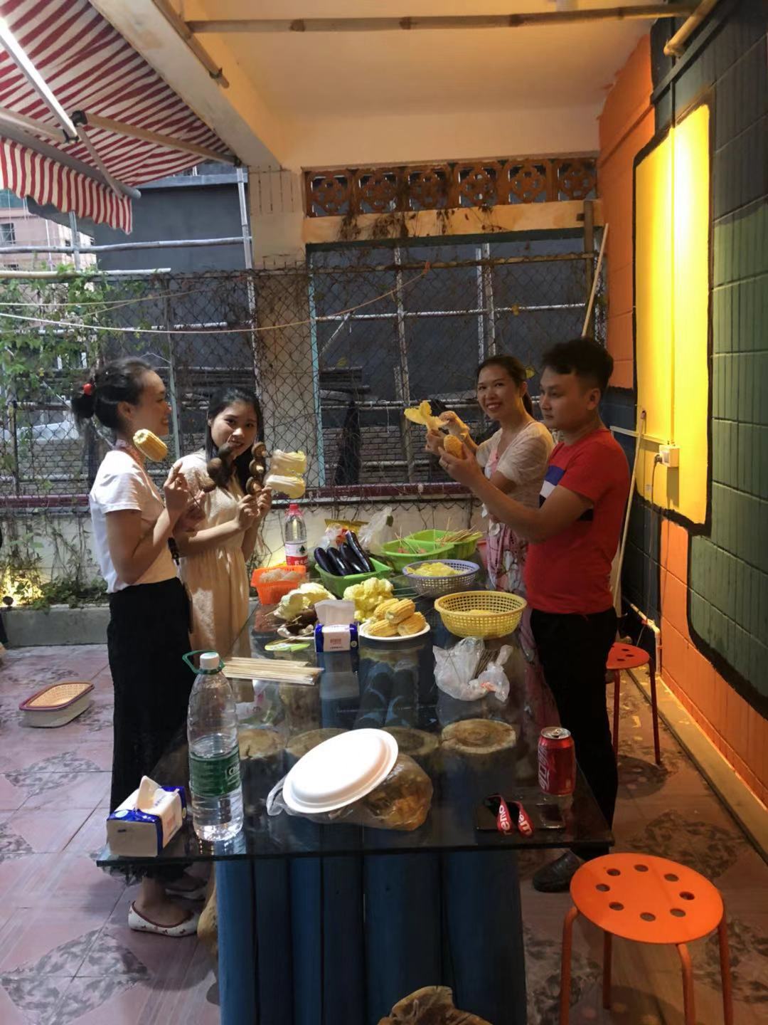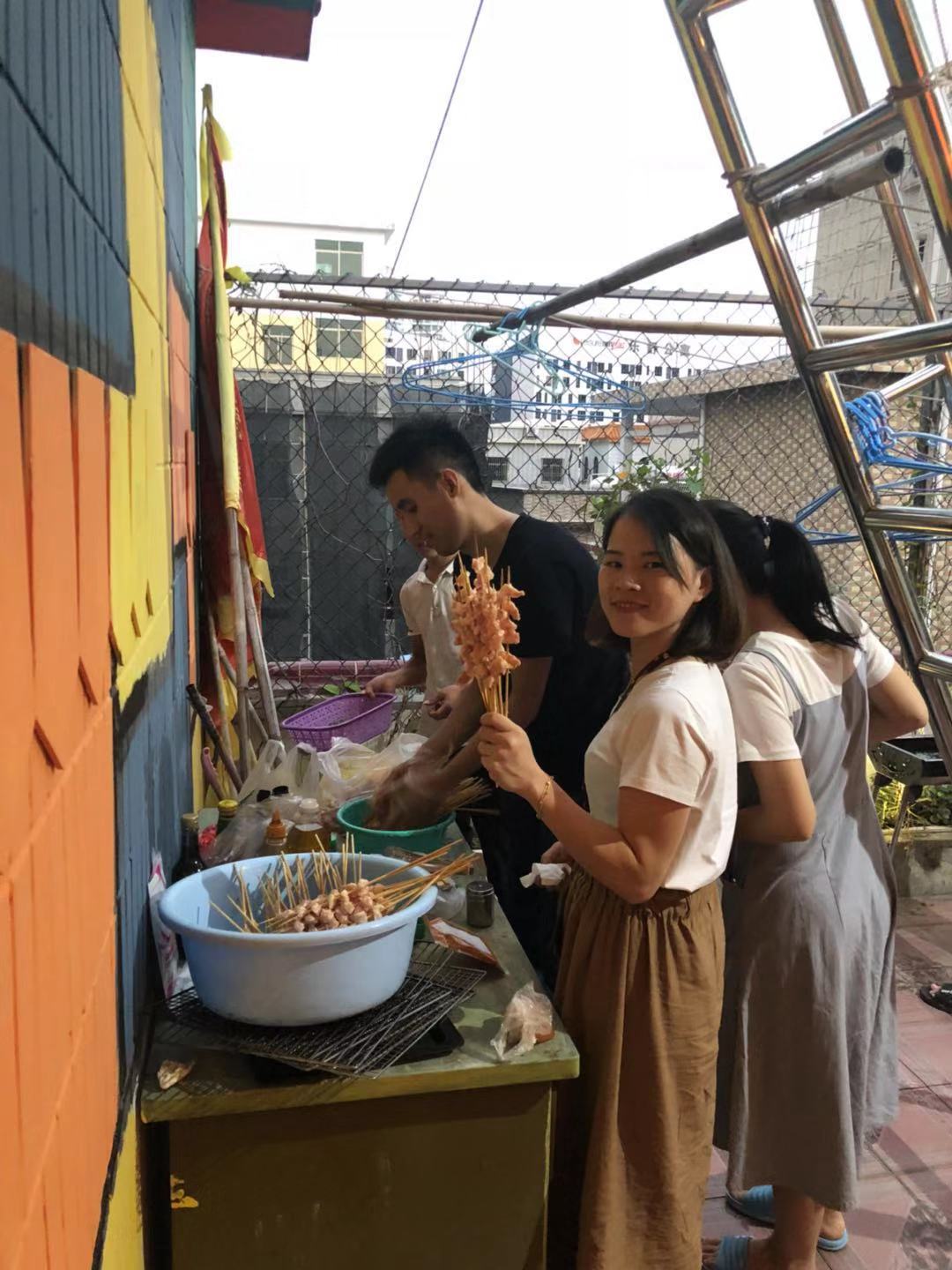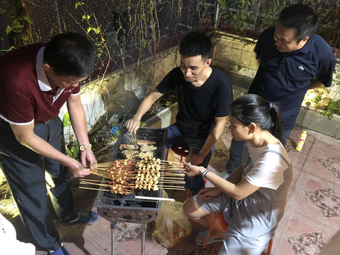夜色下的江湖也很美,来到露天平台搭上烧烤架,准备精美食材,一起吃着烧烤一边赏月美景。