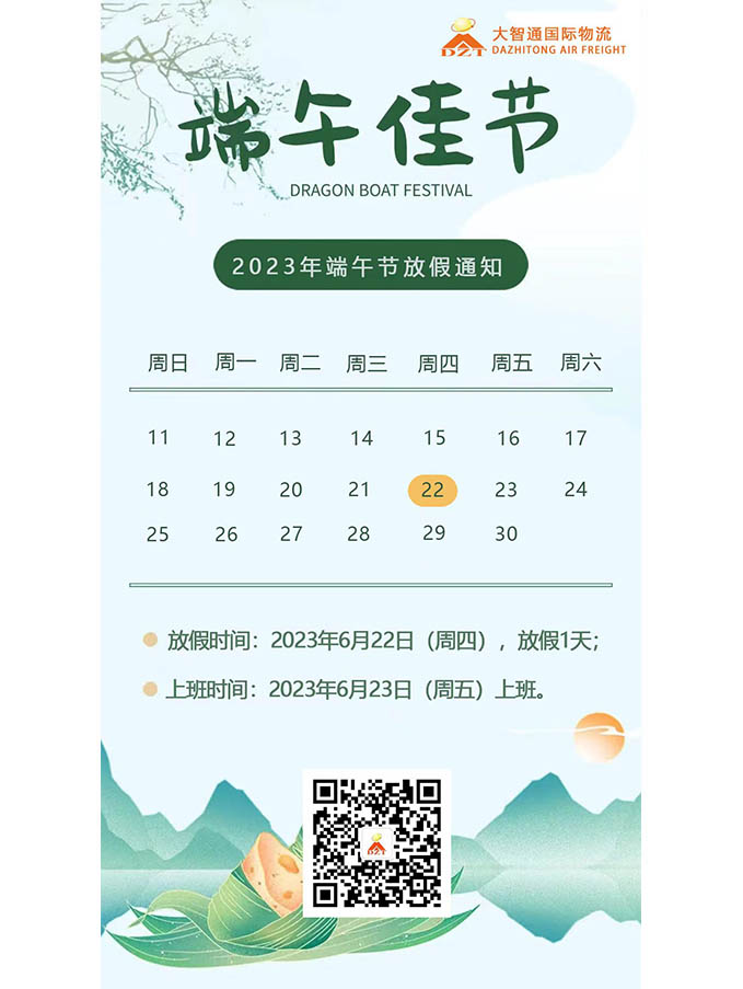 您好!又是一年粽子飘香时,我们将迎来我国重要的传统节日——端午节根据《国务院办公厅关于2023年部分节假日安排的通知》的精神,结合我司实际情况,2023年端午节放假通知如下:
