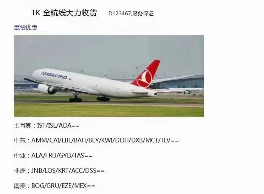 ①TK全航线大力收货②伦敦LHR板位大量收(可收电商货/电子烟/带电货)