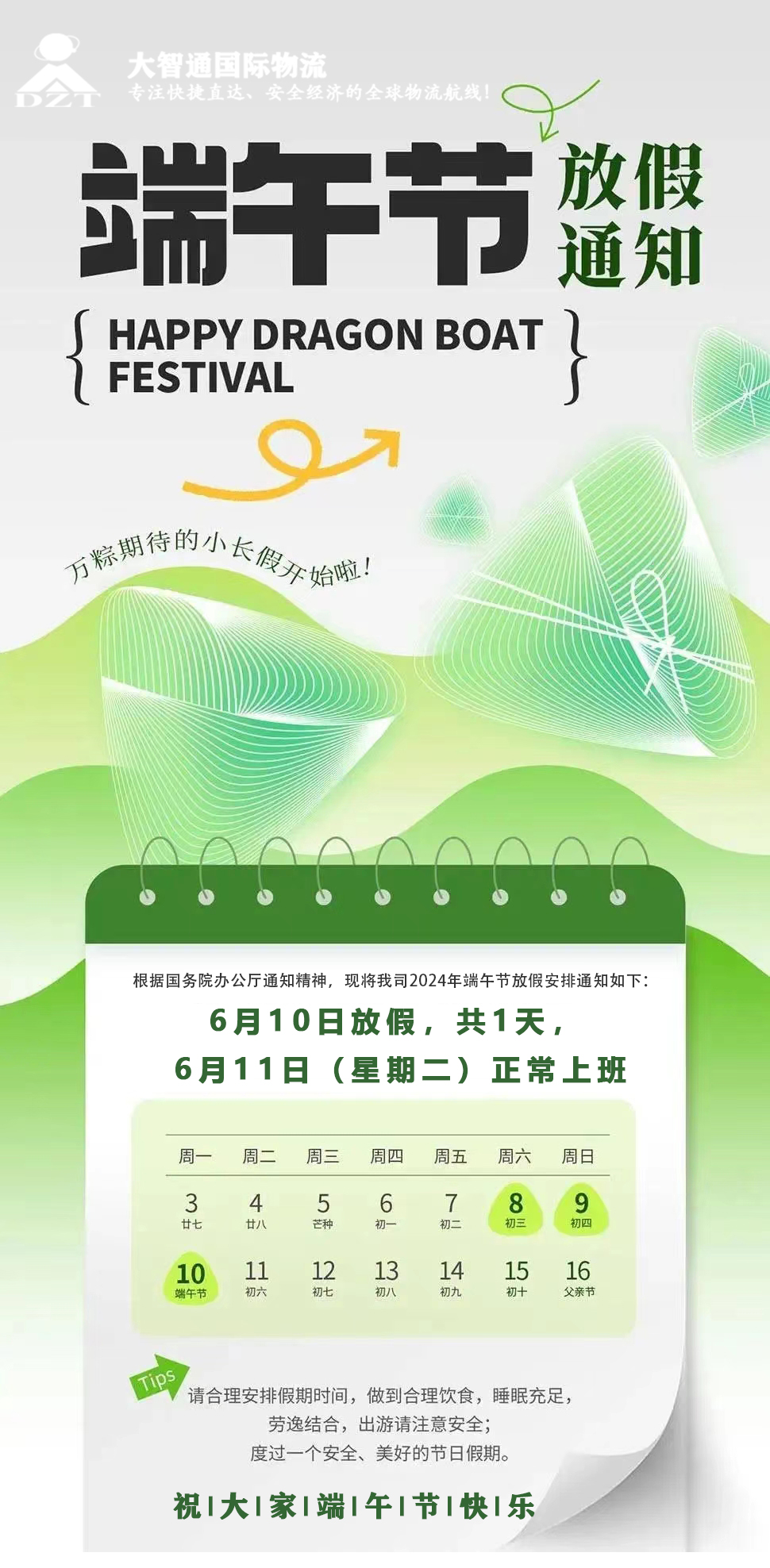 一年一端午,一岁一安康。端午节将至,根据国务院办公厅节假日安排,并结合我司实际情况,现将放假通知事宜通知如下: