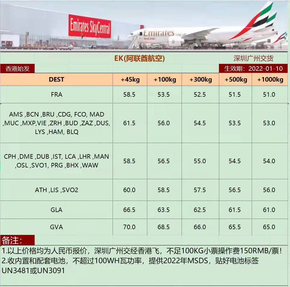 简单收货 服务至上~EK阿联酋航空欧线表外变动更新:今日来赶最好时效!本周舱位充足,有货预报~更多优势航线敬请咨询【深圳大智通国际货运 ...
